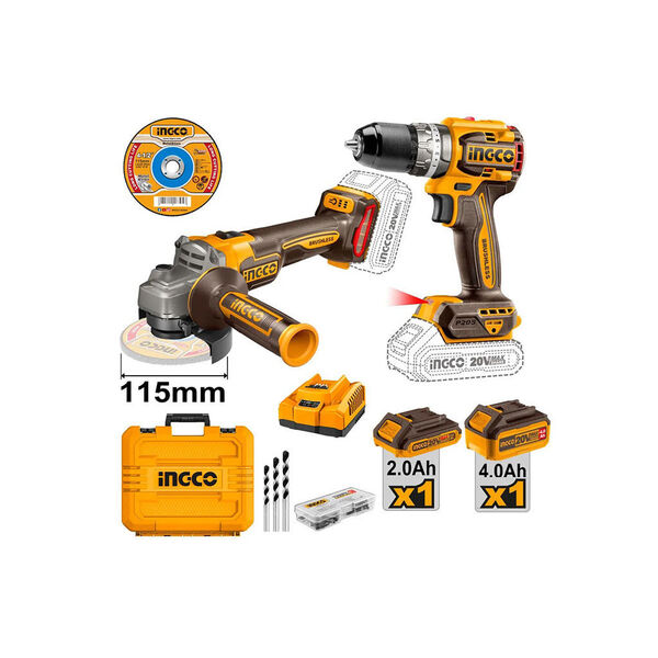 ელექტრო კუთხსახეხისა და ხრახნდამჭერის კომპლექტი 2 ც 20V Lithium-Ion (CKLI20273) INGCO