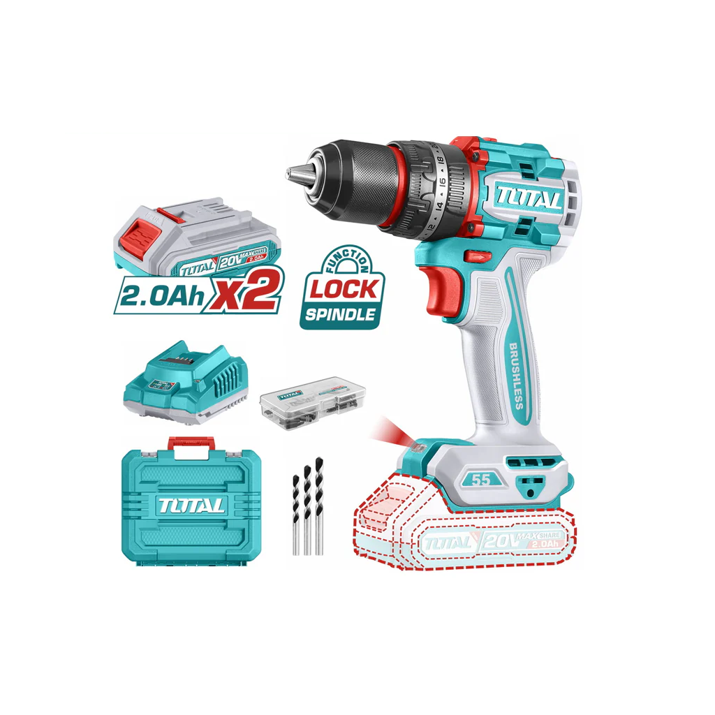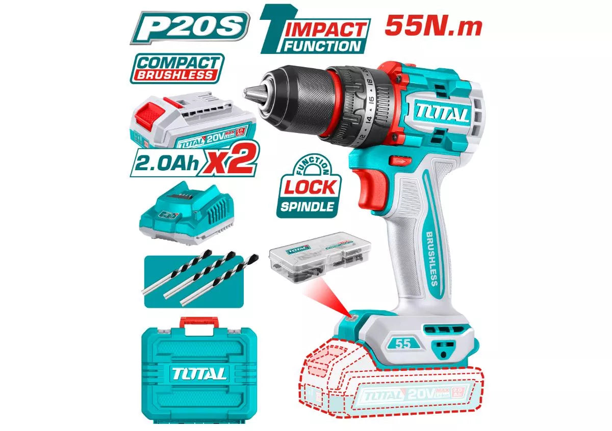 ბურღი-სახრახნისი 20V ჯაგრისების გარეშე ძრავით