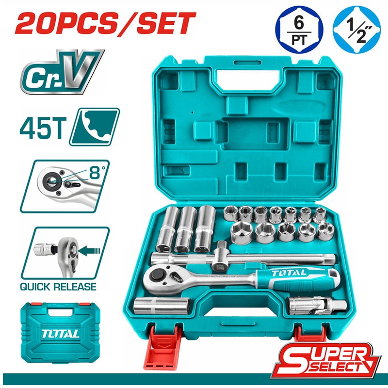 თავაკების ნაკრები 1/2" – 20 ნაჭრ TOTAL THT121201