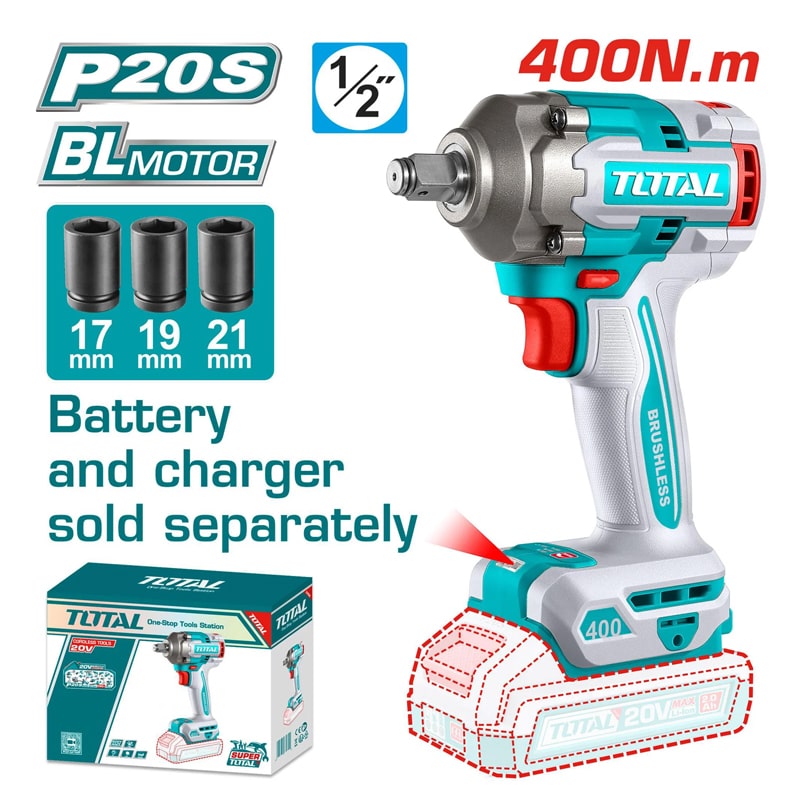 აკუმულატორული ქანჩის გასაღები 20V, 400Nm – TOTAL TIWLI20401 (ელემენტის და დამტენის გარეშე)