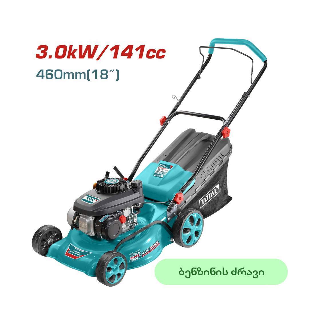 გაზონის სათიბი ბენზინის ძრავზე 3კვტ 460მმ TOTAL (TGT141181). მიწოდება საქართველოს მასშტაბით.
