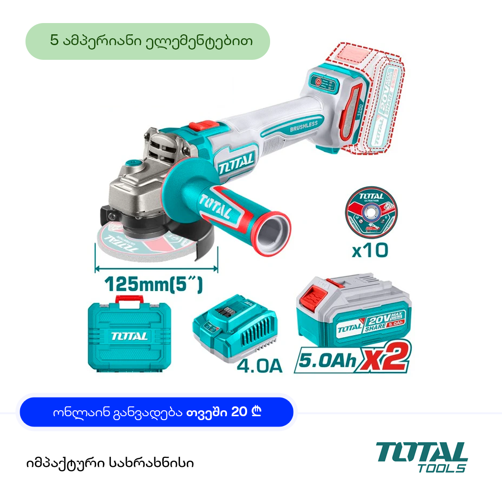 20V უნახშირო კუთხსახეხი – პროფესიონალური შესრულება ერთ ნაკრებში